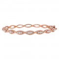 14K rose gold bangle bracelet set with 0.75 ct. round diamonds and featuring braided pattern. The bracelet is 2.5 inch in diameter and secured with box clasp with 8 figure safety.