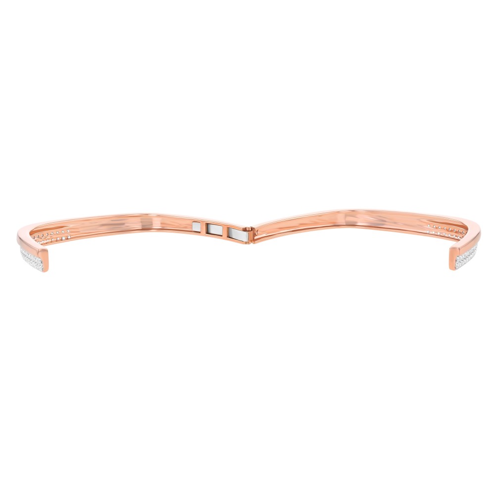 14K rose gold bangle bracelet pave set with 1.10 ct. round diamonds and high polish finish.