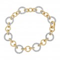 14K two tone yellow and white gold bracelet set with 2.7 ct. diamonds in fancy braided links and diamond circles design. The bracelet is 7 inch long and locks with double fold over safety lock.