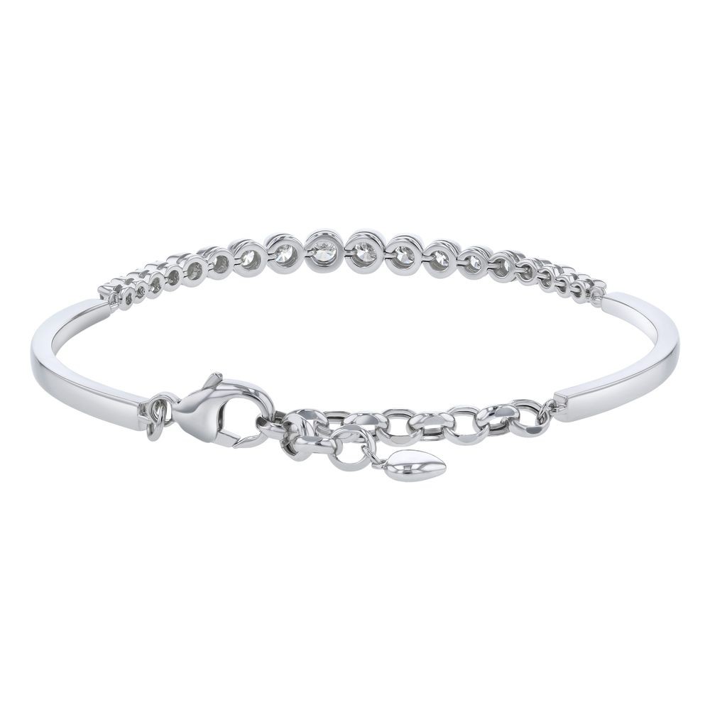 14K white gold adjustable length bracelet set with 1 ct. graduated round diamonds and featuring two curved side bars for comfortable and smooth wrist wrap. The bracelet is secured with lobster clasp and adjustable up to 8 inch.