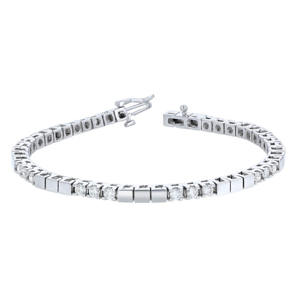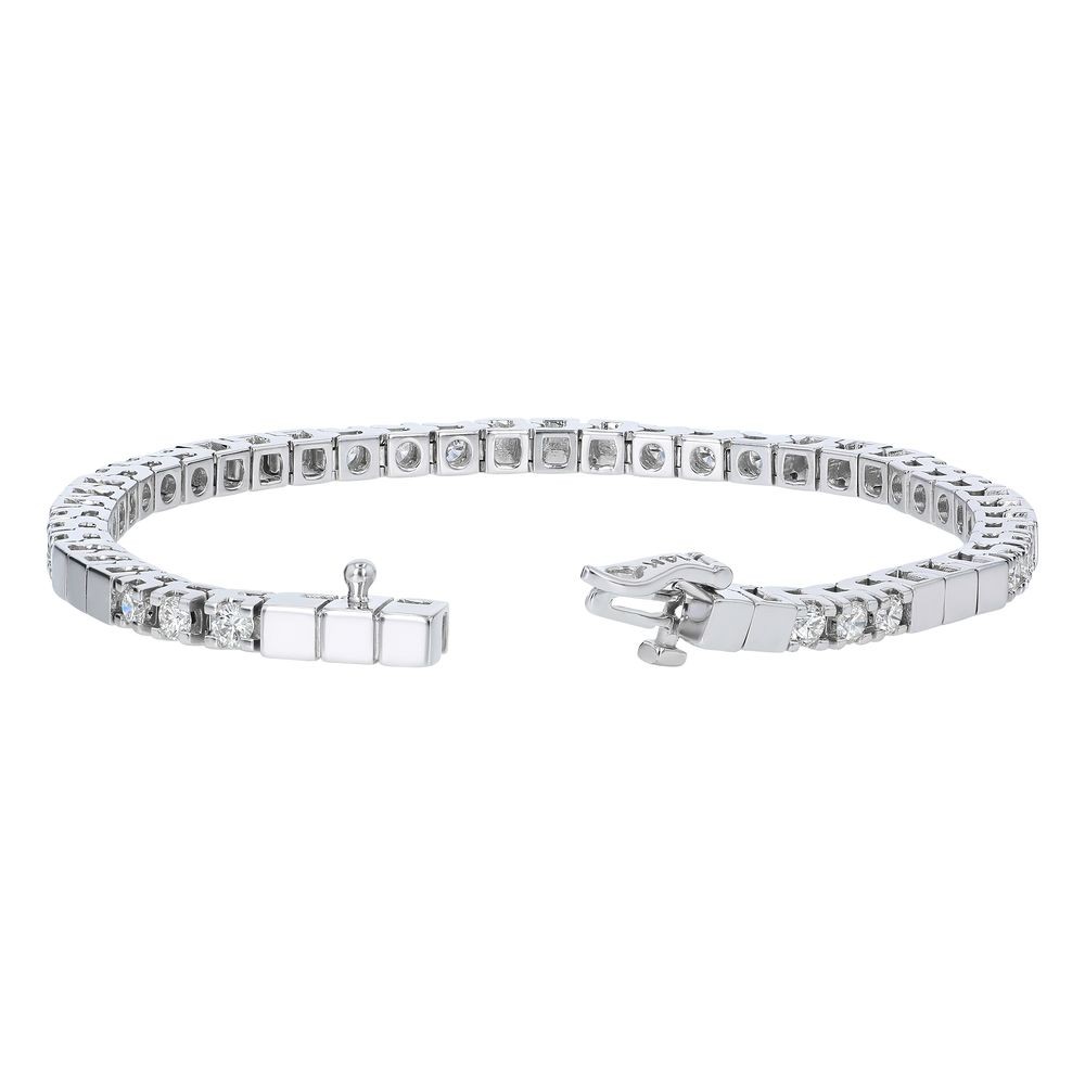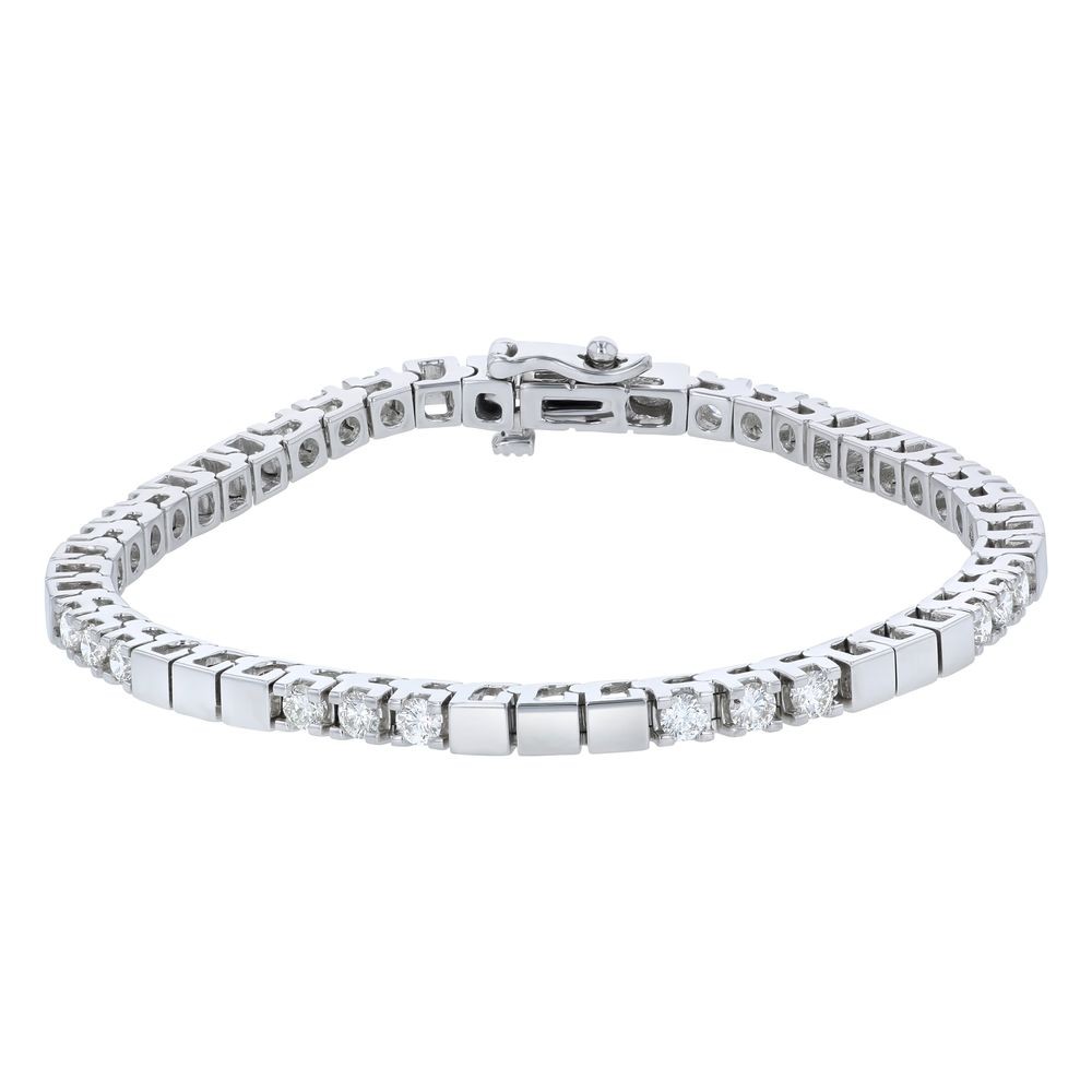 14K white gold tennis bracelet set with 1.80 ct. round diamonds secured in 4 prongs setting. The bracelet is 7 inch long and feature box clasp with eight figure safety.