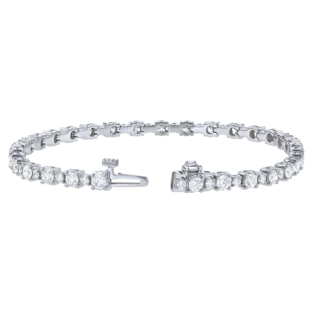 14K white gold tennis bracelet set with 4 ct. round diamonds secured in 4 prongs setting. The bracelet is 7 inch long and feature box clasp with fold over safety.