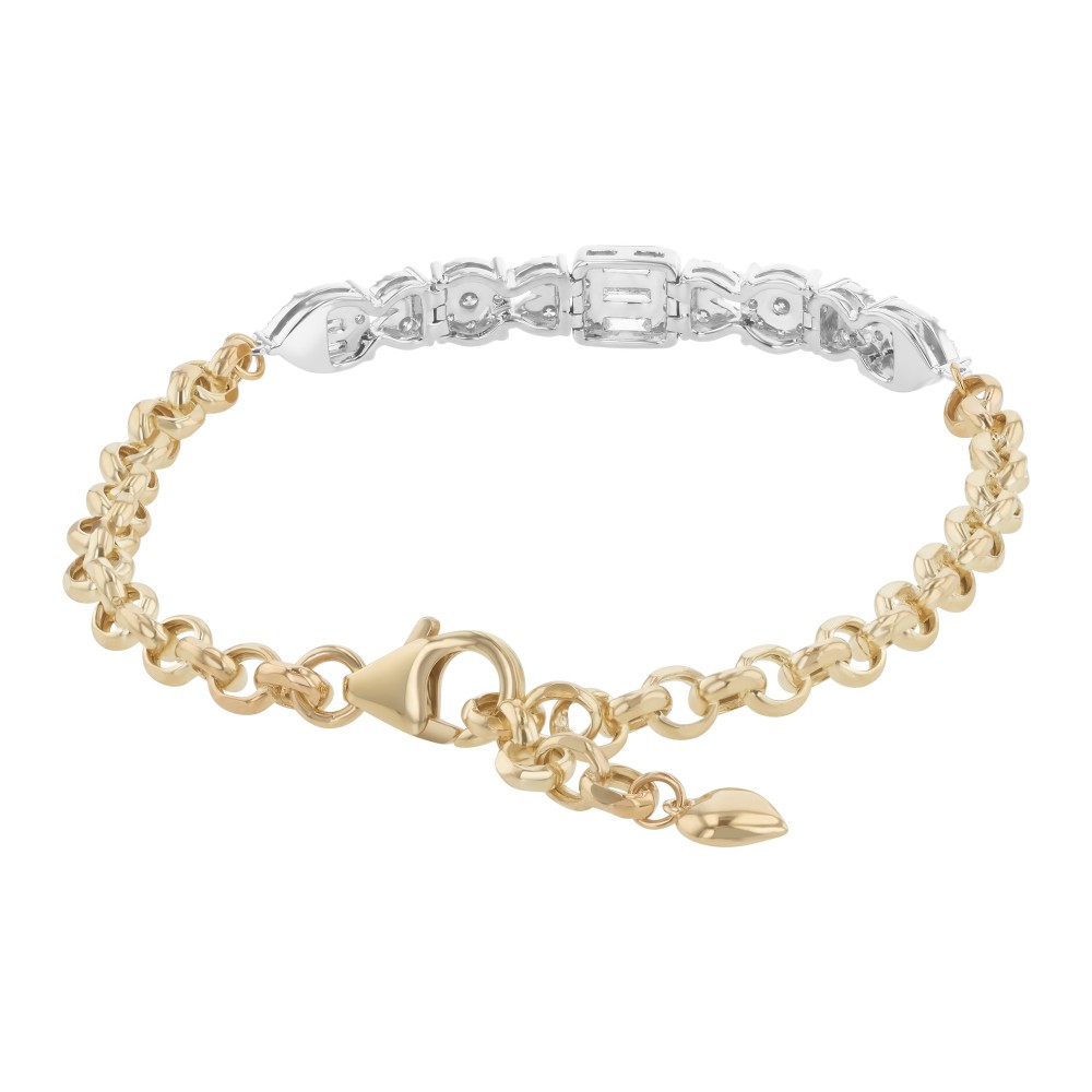 14K yellow and white gold bracelet set with 1.00 ct. baguette and round brilliant diamonds. Rollo chain adjustable up to 8 inch and secured with lobster clasp.