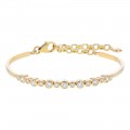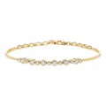14K yellow gold adjustable length bracelet set with 0.75 ct. bezel set round diamonds and featuring two curved side bars for smooth and comfortable wrist wrap. The bracelet is secured with lobster clasp and adjustable up to 8 inch.