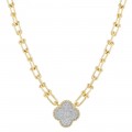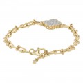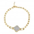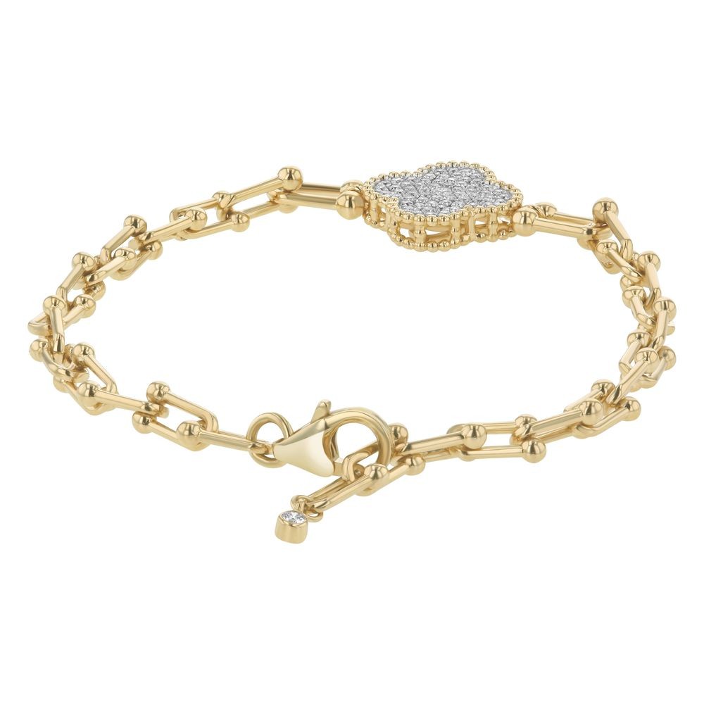 14K yellow gold bracelet set with 0.45ct. round brilliant diamonds in clover design. The bracelet features handmade hardware chain adjustable up to 7.5 inch and secured with lobster clasp.