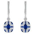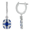 14K White Gold 2.30 carats Diamonds and Blue Sapphires Art Deco Earrings