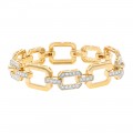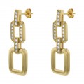 14K yellow gold double rectangles link drop earrings set with 1.0 ct. white round diamonds dangling from post and pushback.