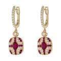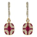 14K Yellow Gold 2.25 carats Diamonds and Red Rubies Art Deco Earrings