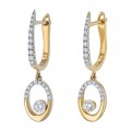14K yellow gold oval shape earrings dangling from diamond hoops secured with hinged back. Set with 0.37 ct. round diamonds. Part of our MIRAGIO collection.