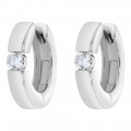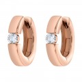 14K rose gold round huggie hinged hoop earrings set with two round diamonds 0.25 carat TW.