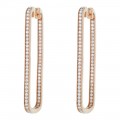 14K rose gold rectangle shape contemporary hoop earrings set with 1.00 ct. diamonds in inside-out design