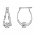 14K white gold huggie hoop earrings set with 0.25 carat diamonds. The hoop earrings are secured with snap in bar.