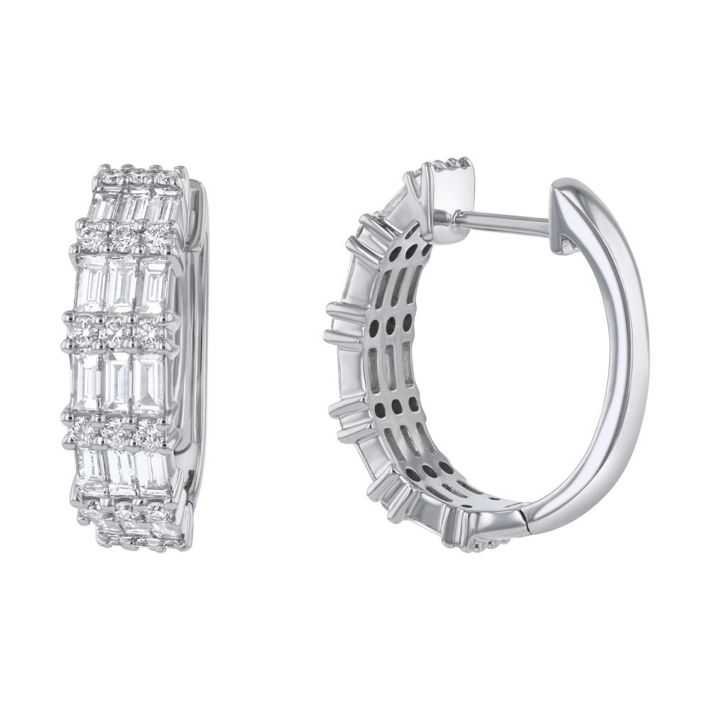 14K White Gold 1.80 carat Baguette and Round Diamonds Hoop Earrings
