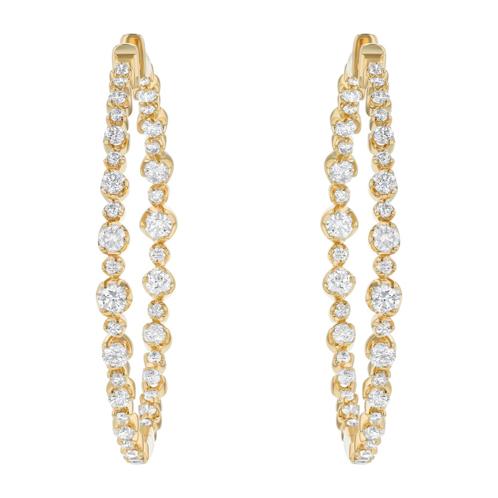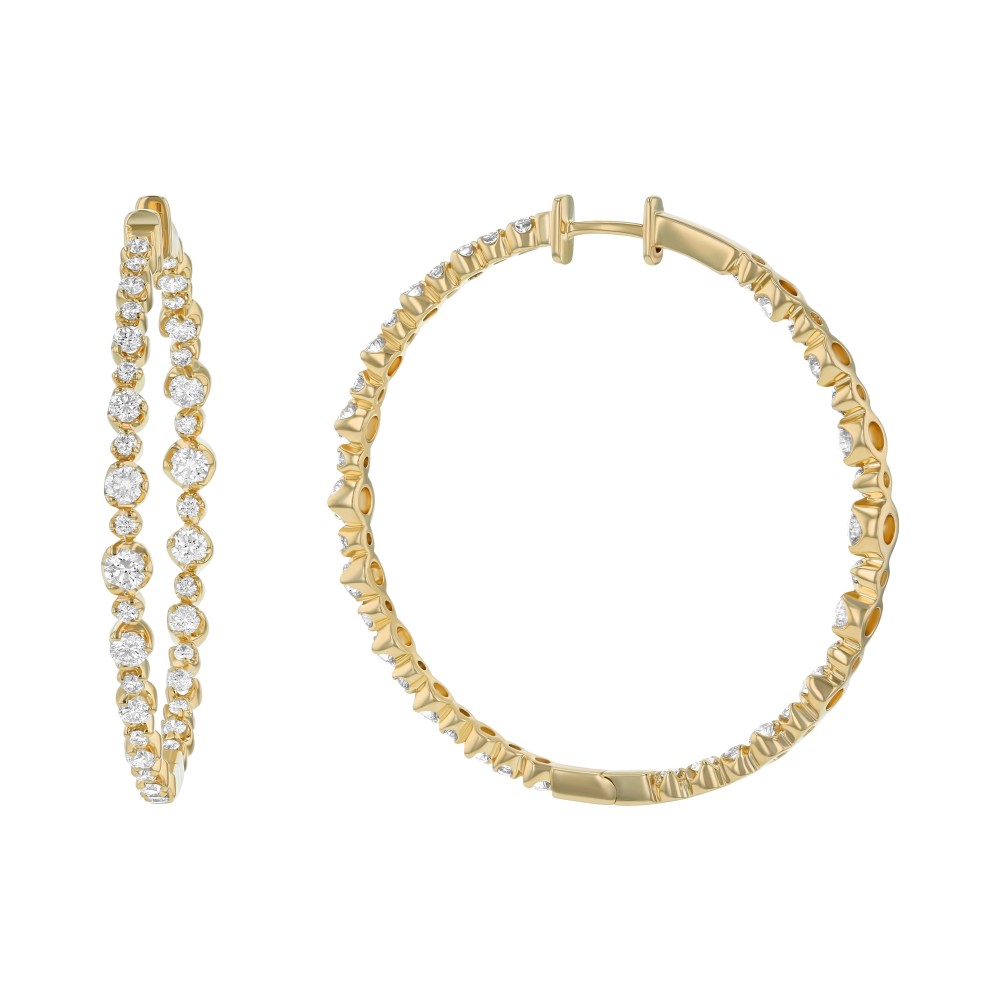 14K Yellow Gold 3.00 carat Diamonds Inside-Out Round Shape Hoop Earrings