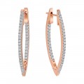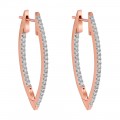 14K rose gold inside-out hoop earrings set with 1.00 ct. round diamonds in V shape design.