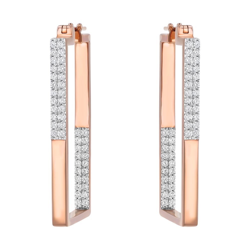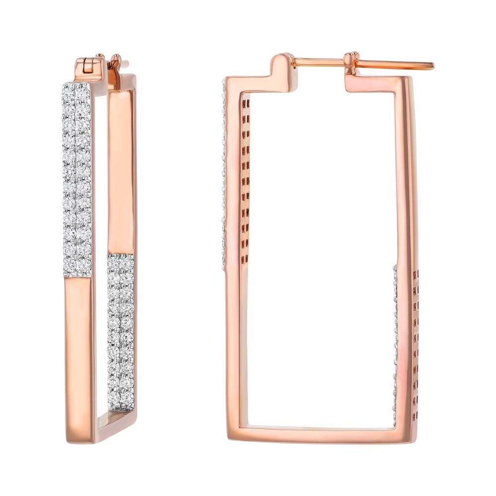 14K rose gold square shape contemporary hoop earrings set with 1.00 ct. diamonds in inside-out design