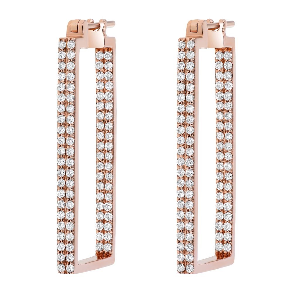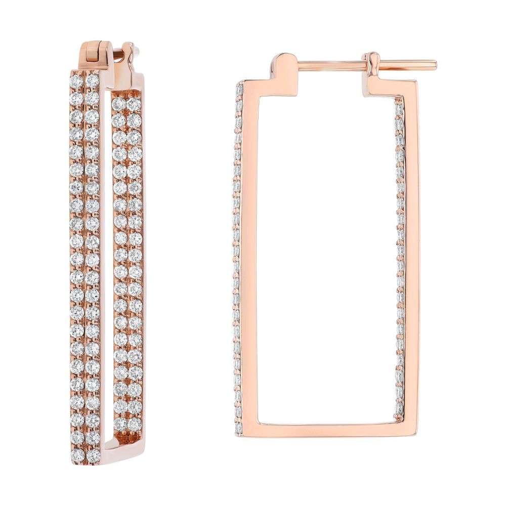 14K rose gold square shape contemporary hoop earrings set with 1.00 ct. diamonds in inside-out design