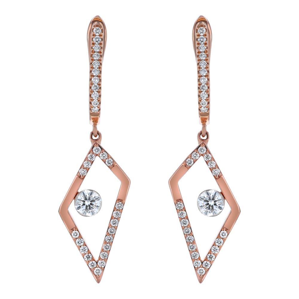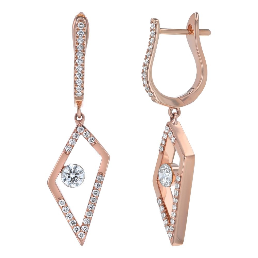 14K rose gold free form shape earrings dangling from diamond hoops secured with hinged back. Set with 0.70 ct. round diamonds. Part of our MIRAGIO collection.