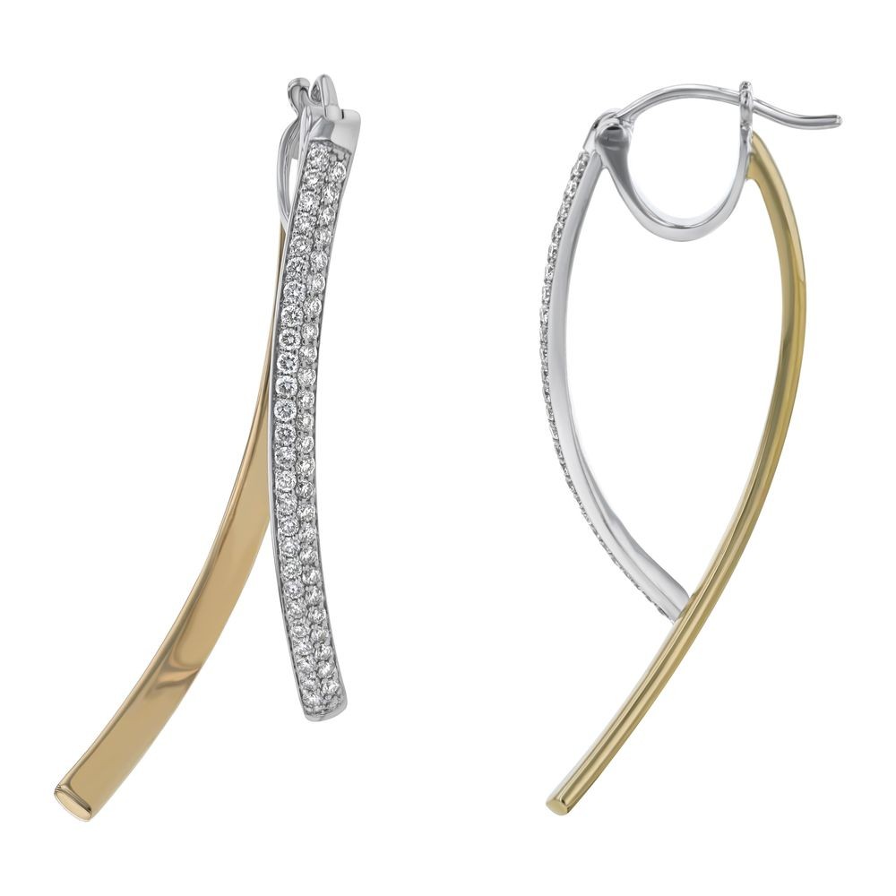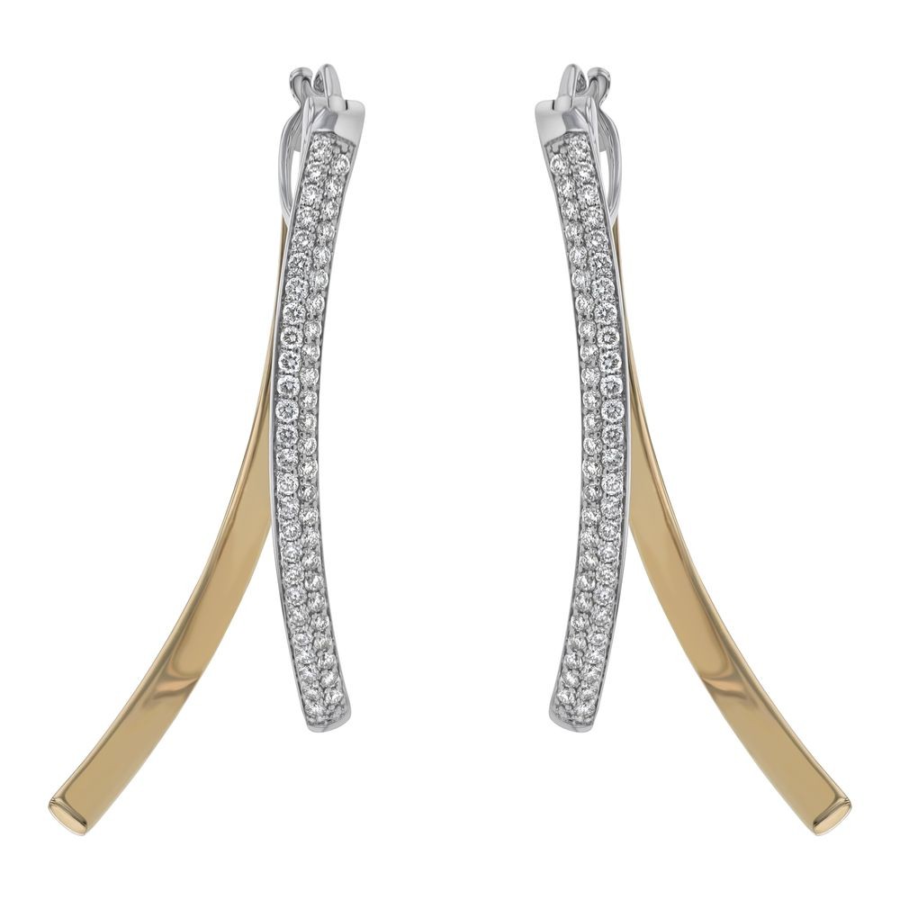 14K two-tone yellow and white gold inside-out hoop earrings set with 1.0 ct. round white diamonds in HOPE twisted design.