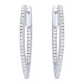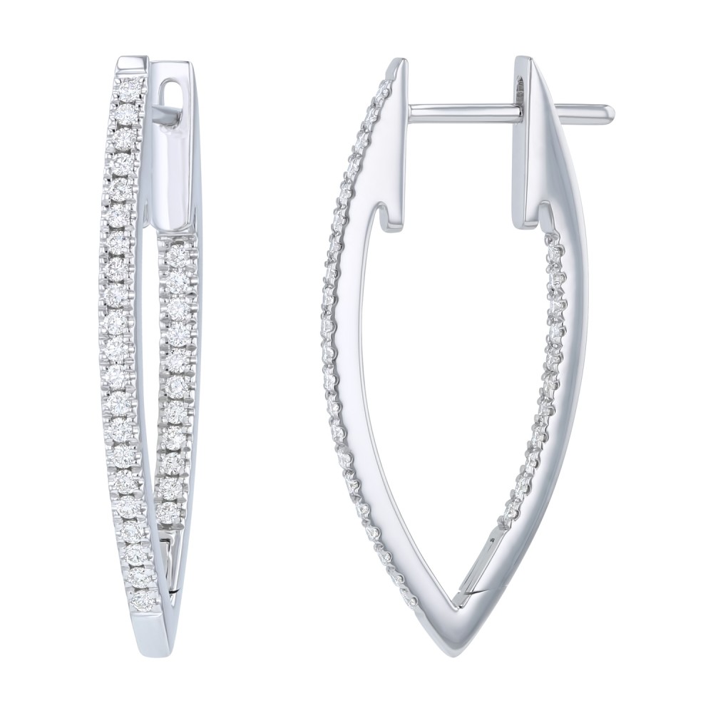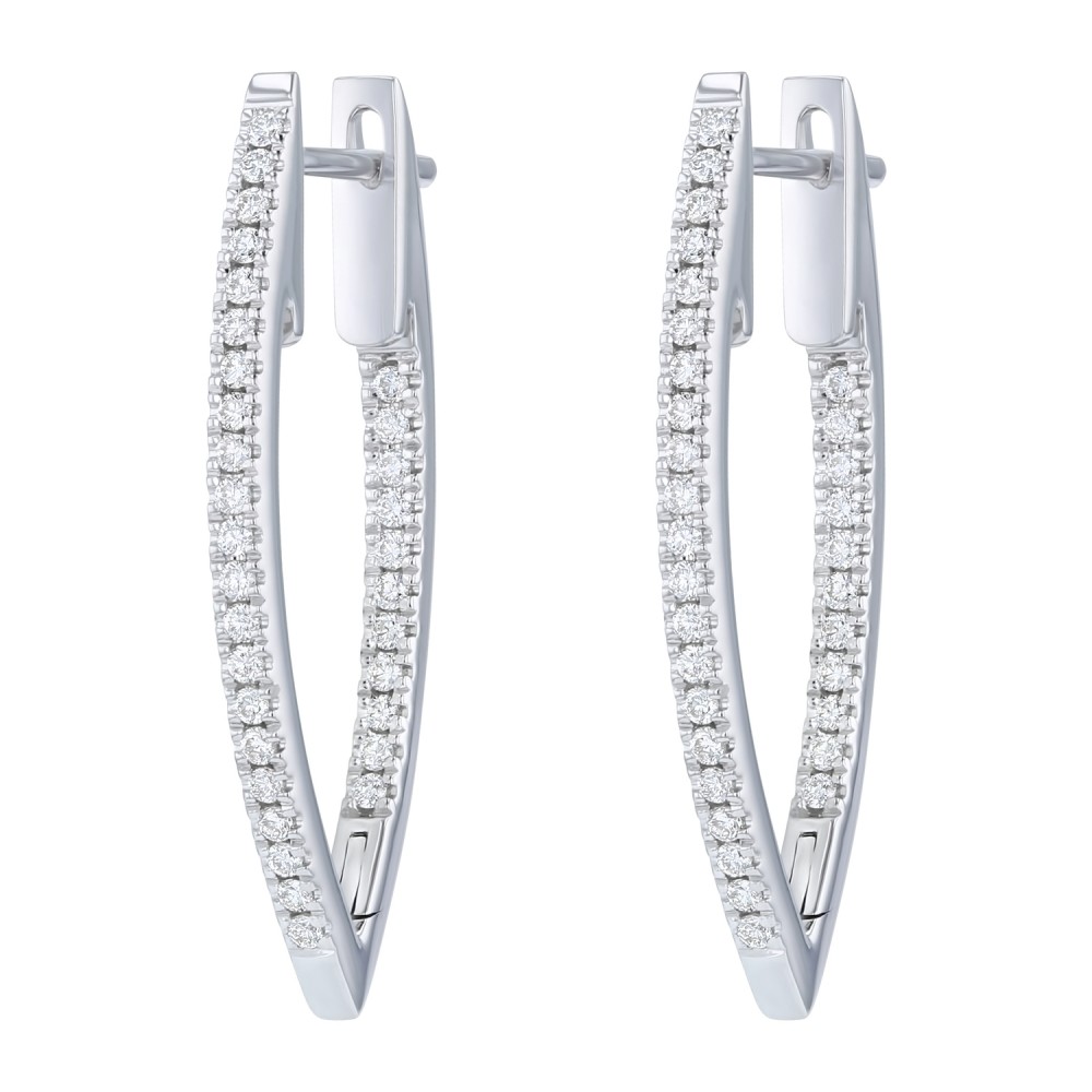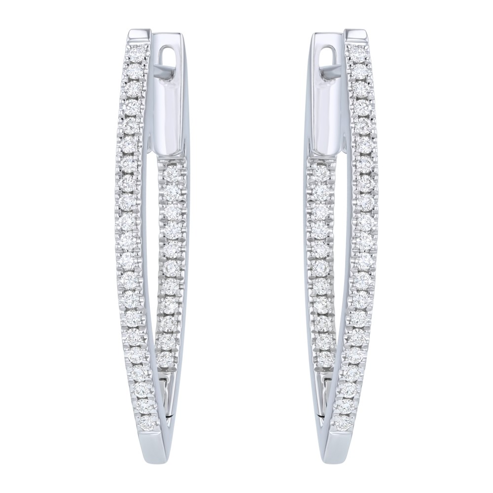 14K white gold inside-out hoop earrings set with 0.50 ct. round diamonds in V shape design.