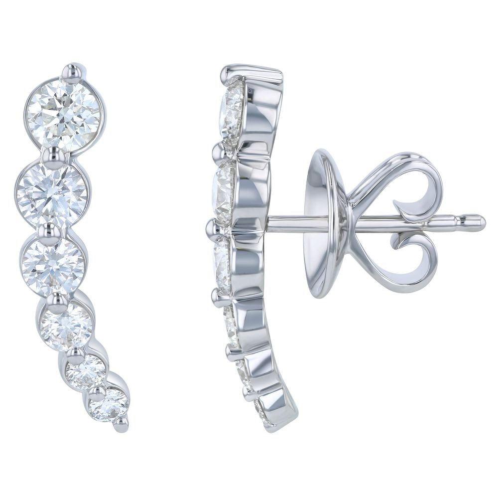 14K white gold ear climber style earrings set with 1.00 ct. round diamonds. Part of our Ear Climbers collection.