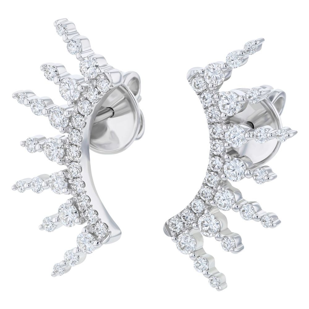 14K white gold ear climber style earrings set with 1.00 ct. round diamonds. Part of our Ear Climbers collection.