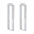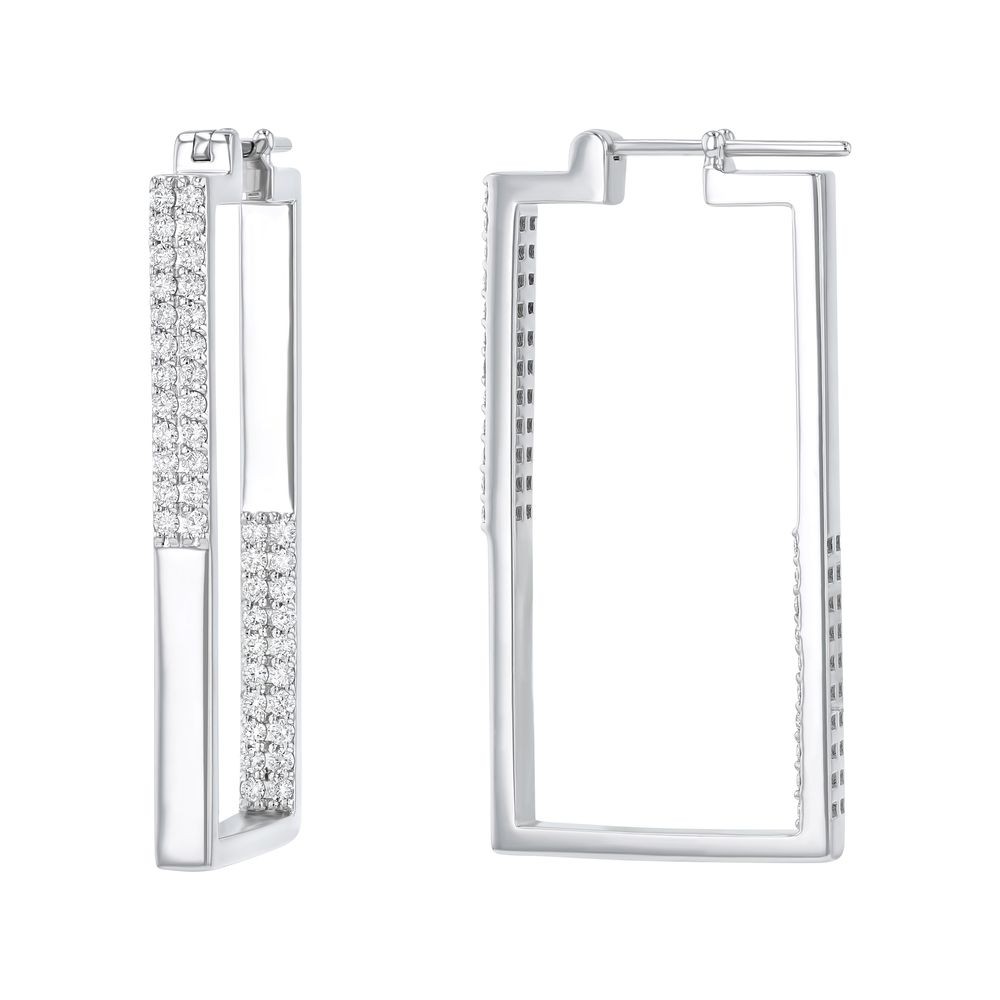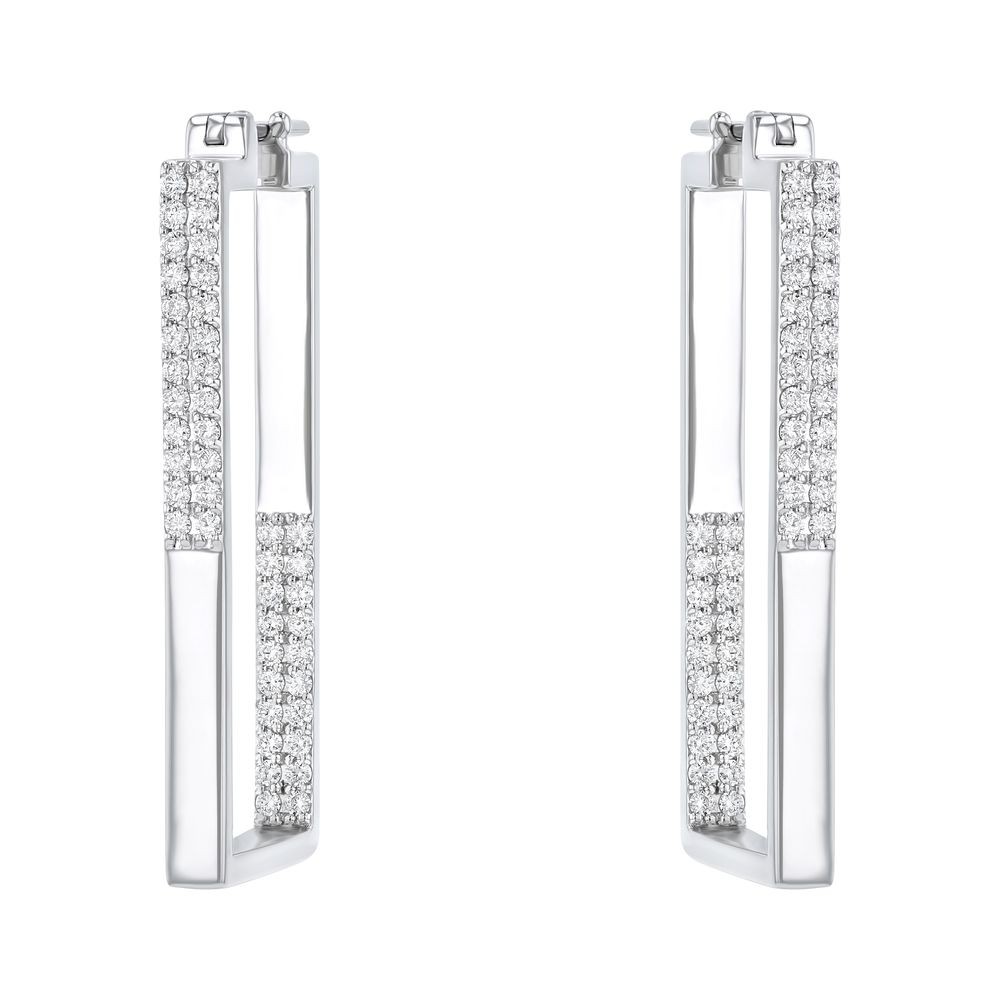 14K white gold square shape contemporary hoop earrings set with 1.00 ct. diamonds in inside-out design