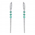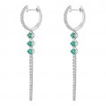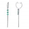 14K White Gold 1.10 carats Diamonds and Green Emeralds Drop Earrings