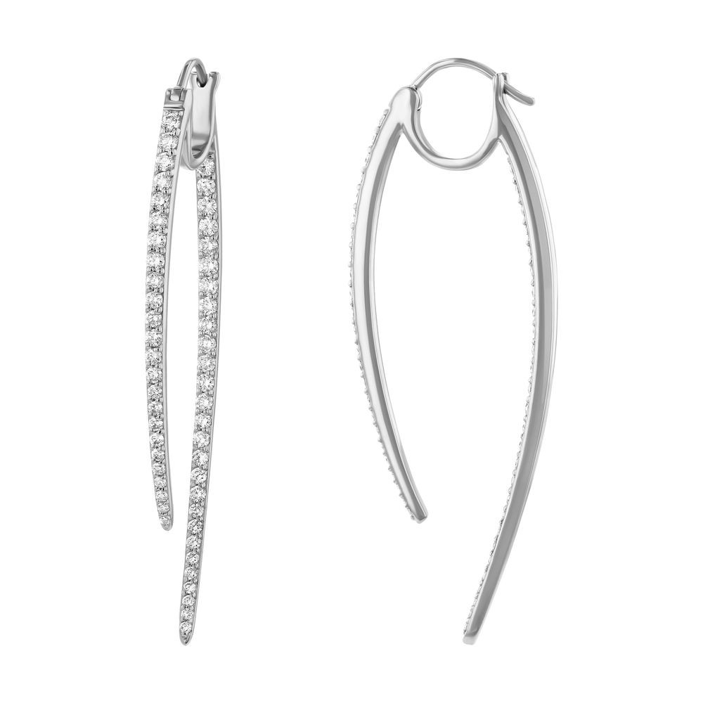 14K white gold inside-out hoop earrings set with 1.50 ct. round white diamonds.