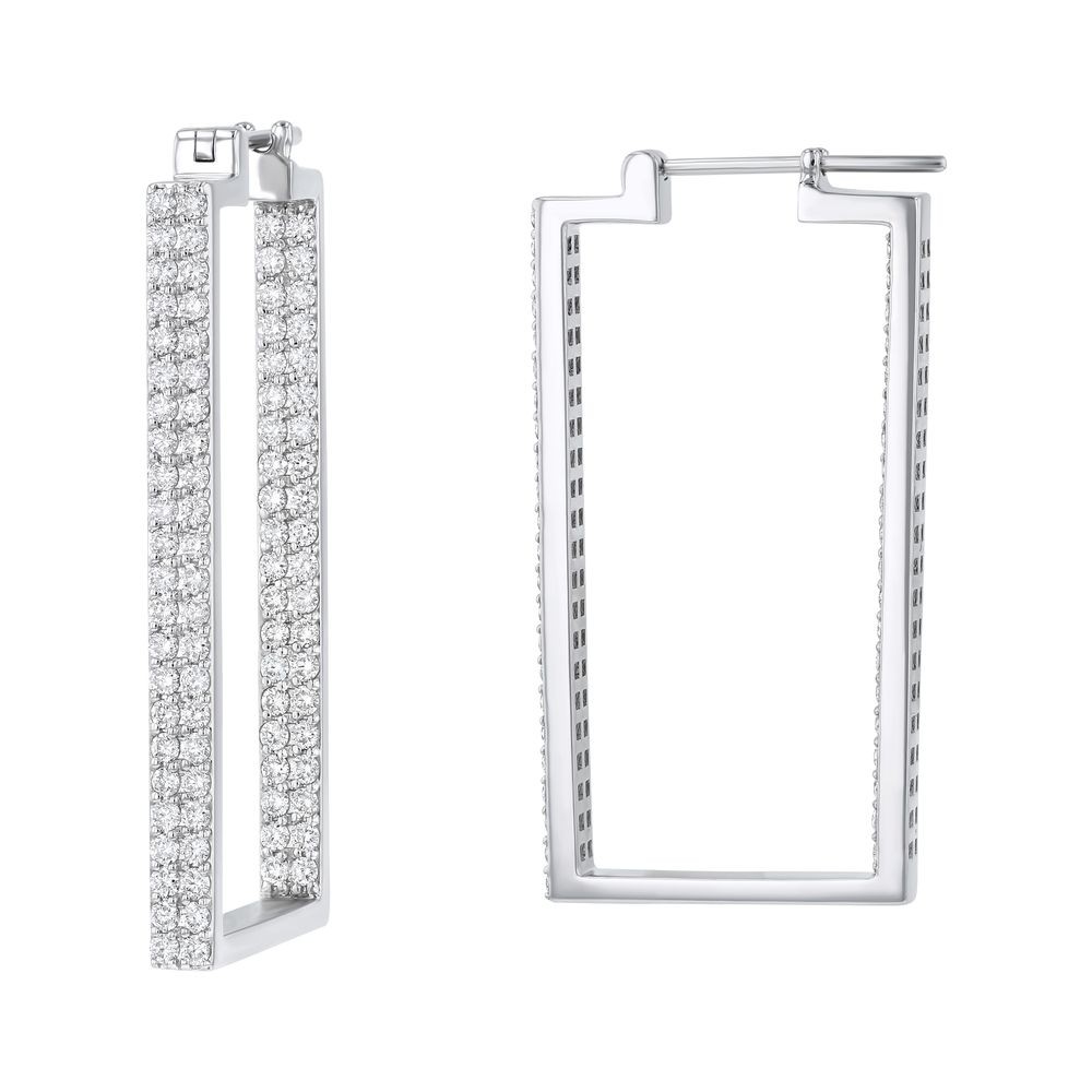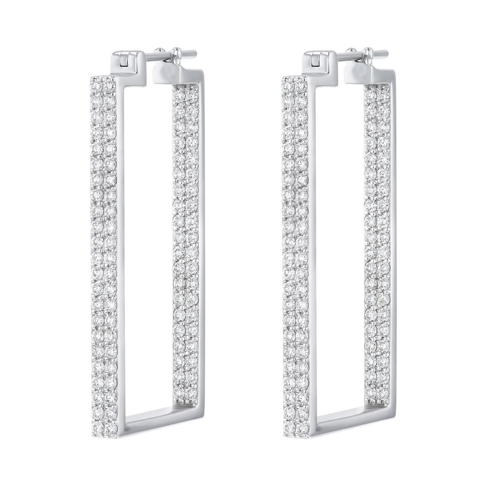 14K white gold square shape contemporary hoop earrings set with 2.00 ct. diamonds in inside-out design