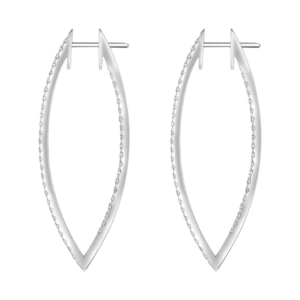 14K white gold inside-out hoop earrings set with 3.00 ct. round diamonds in V shape design.