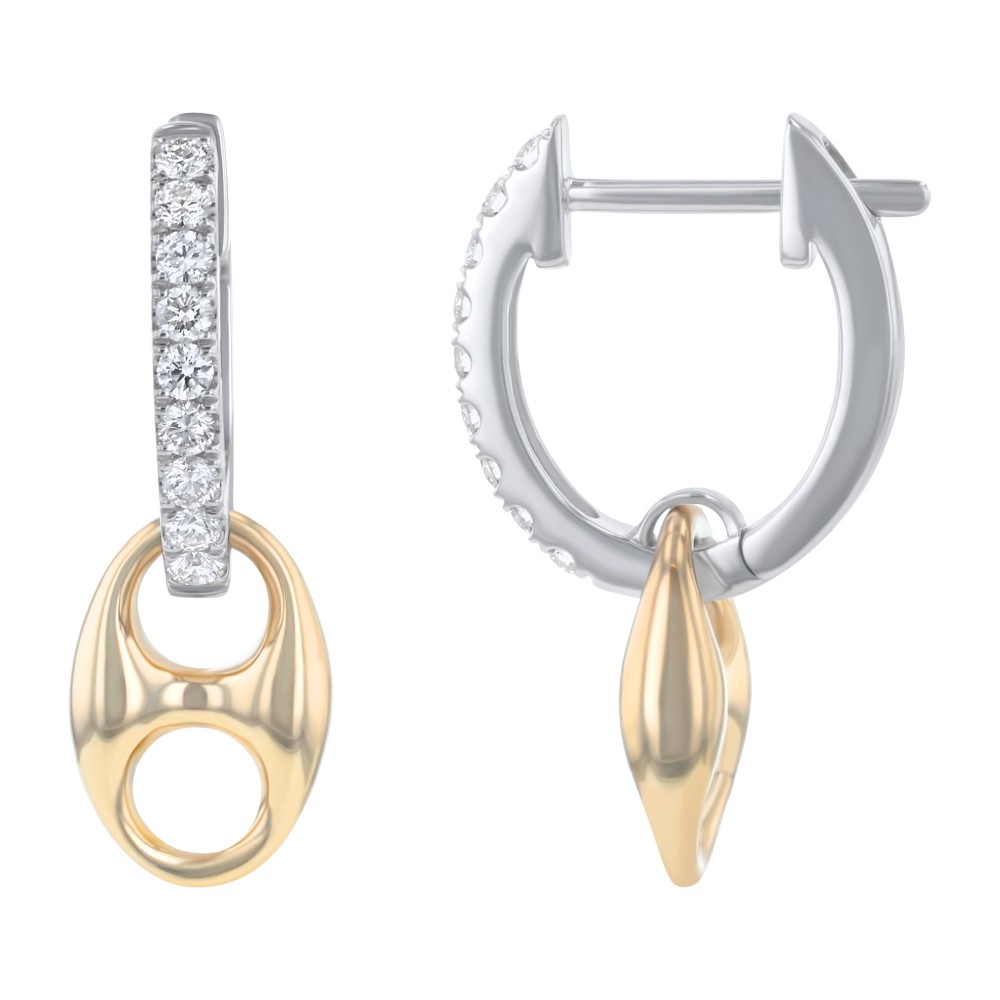 14K yellow and white gold mariner link drop earrings set with 0.26 ct. white round diamonds dangling from oval hoops.