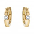 14K yellow gold round huggie hinged hoop earrings set with two round diamonds 0.25 carat TW.