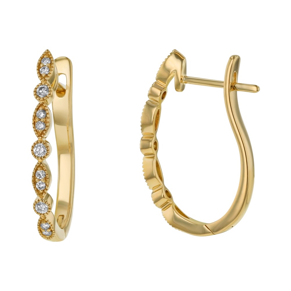 14K yellow gold earrings set with 0.28 ct. round diamonds in art deco oval design.