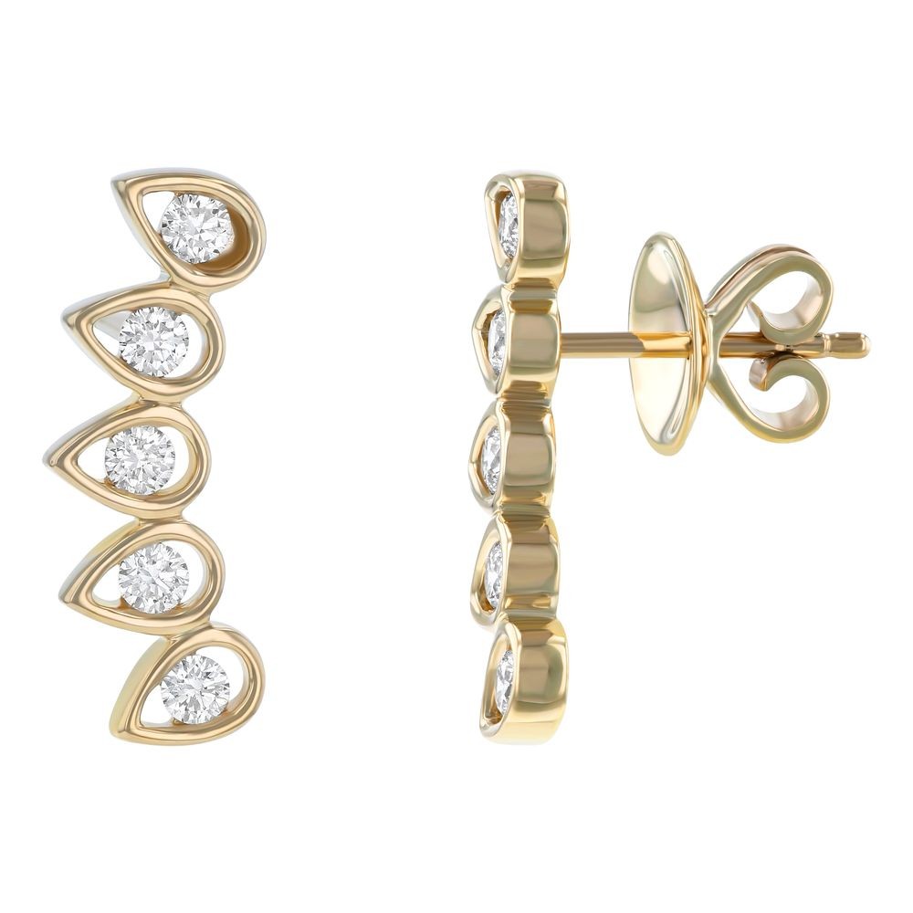14K yellow gold ear climber style earrings set with 0.45 ct. round diamonds. Part of our Ear Climbers collection.