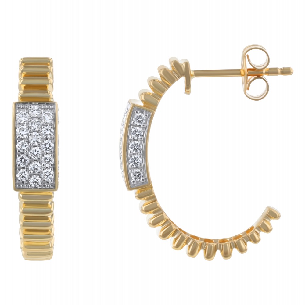 14K yellow gold half hoop earrings pave set with 0.55 ct. round diamonds and high polish finish.