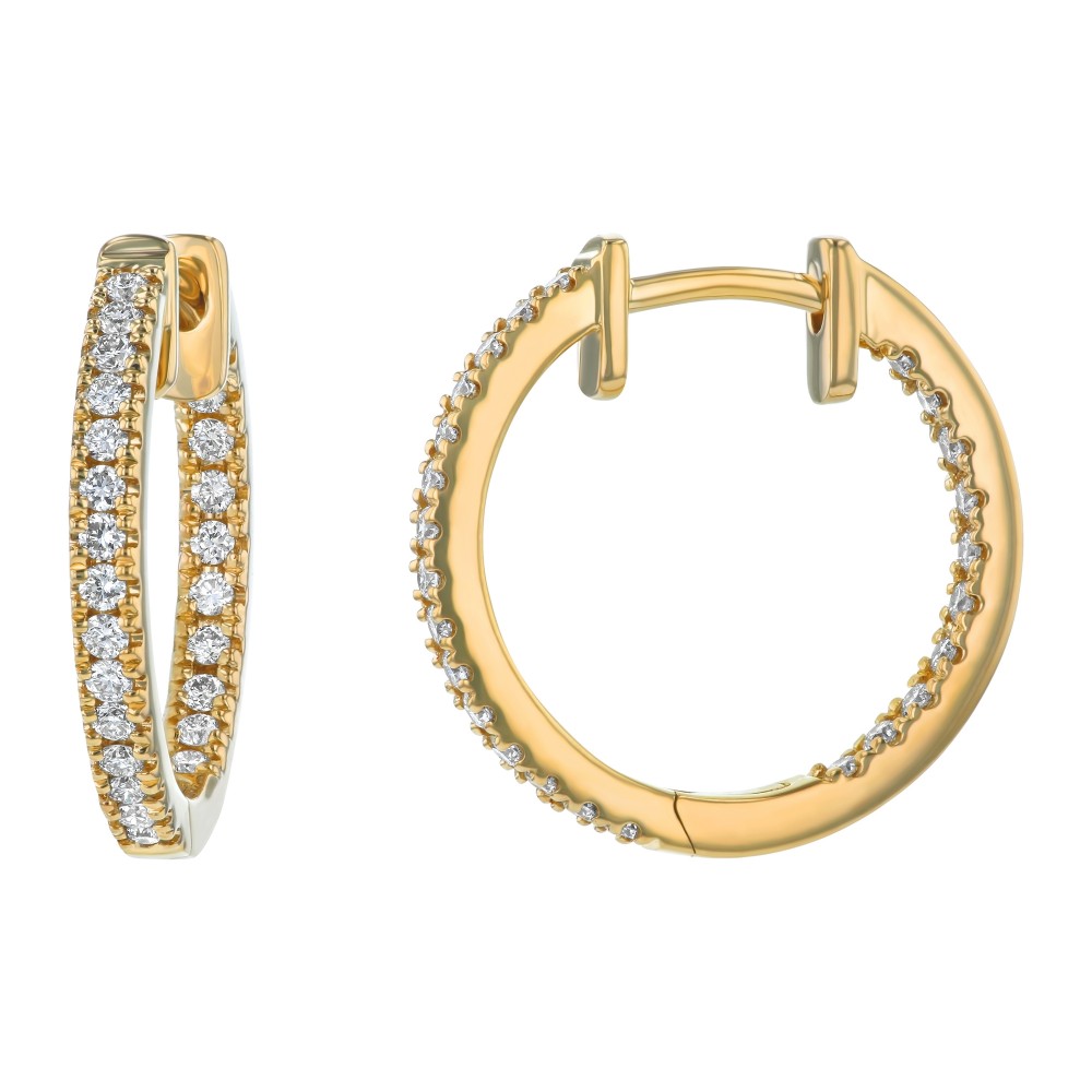 14K yellow gold inside-out hoop earrings set with 0.50 ct. round diamonds in round design.