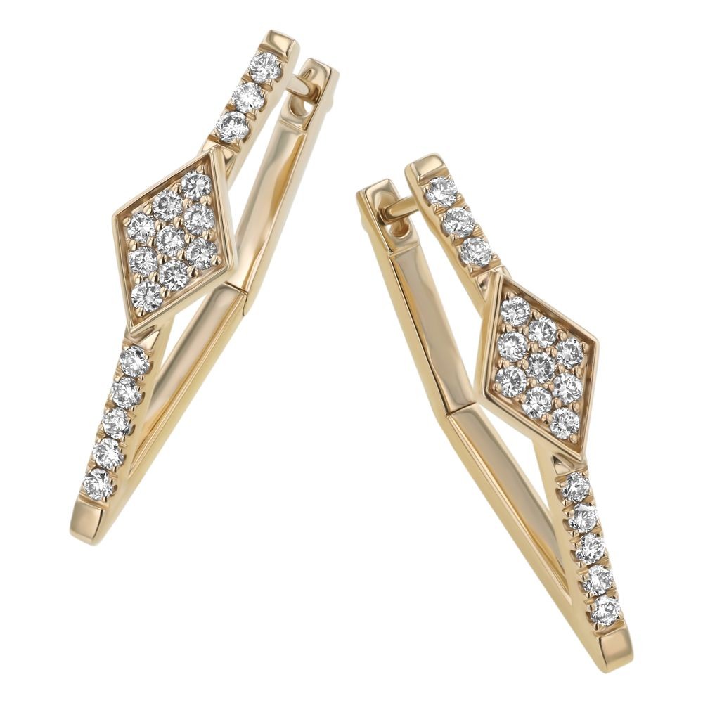 14K yellow gold hoop earrings set with 0.50 ct. round diamonds in diamond shape design.