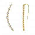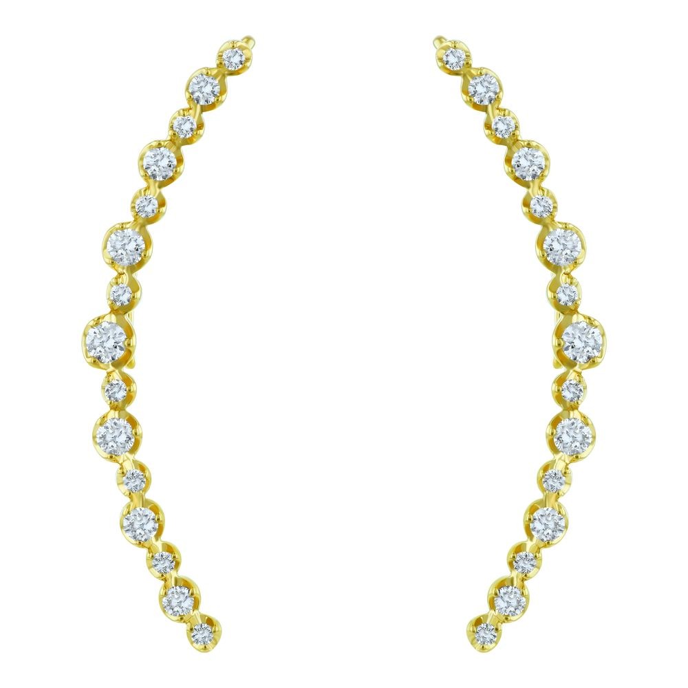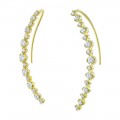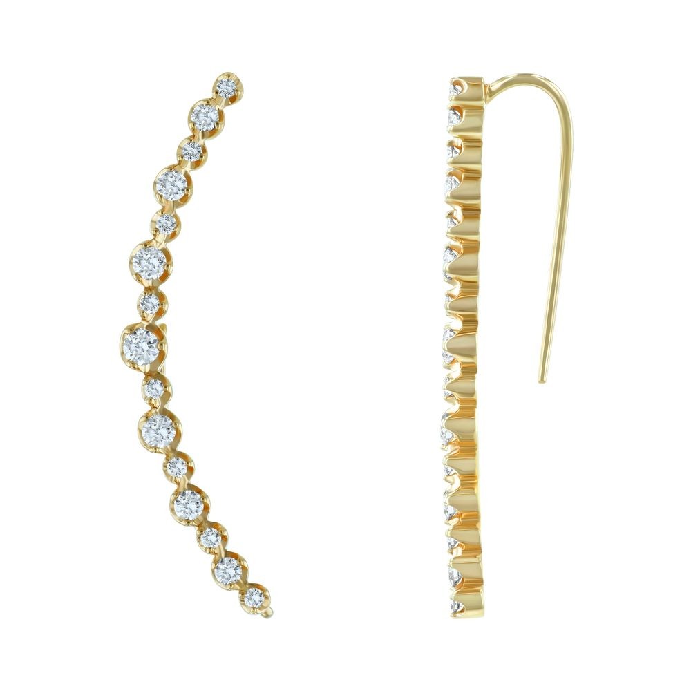 14K yellow gold shepherd hook earrings set with 0.95 ct. round diamonds in curved shape.