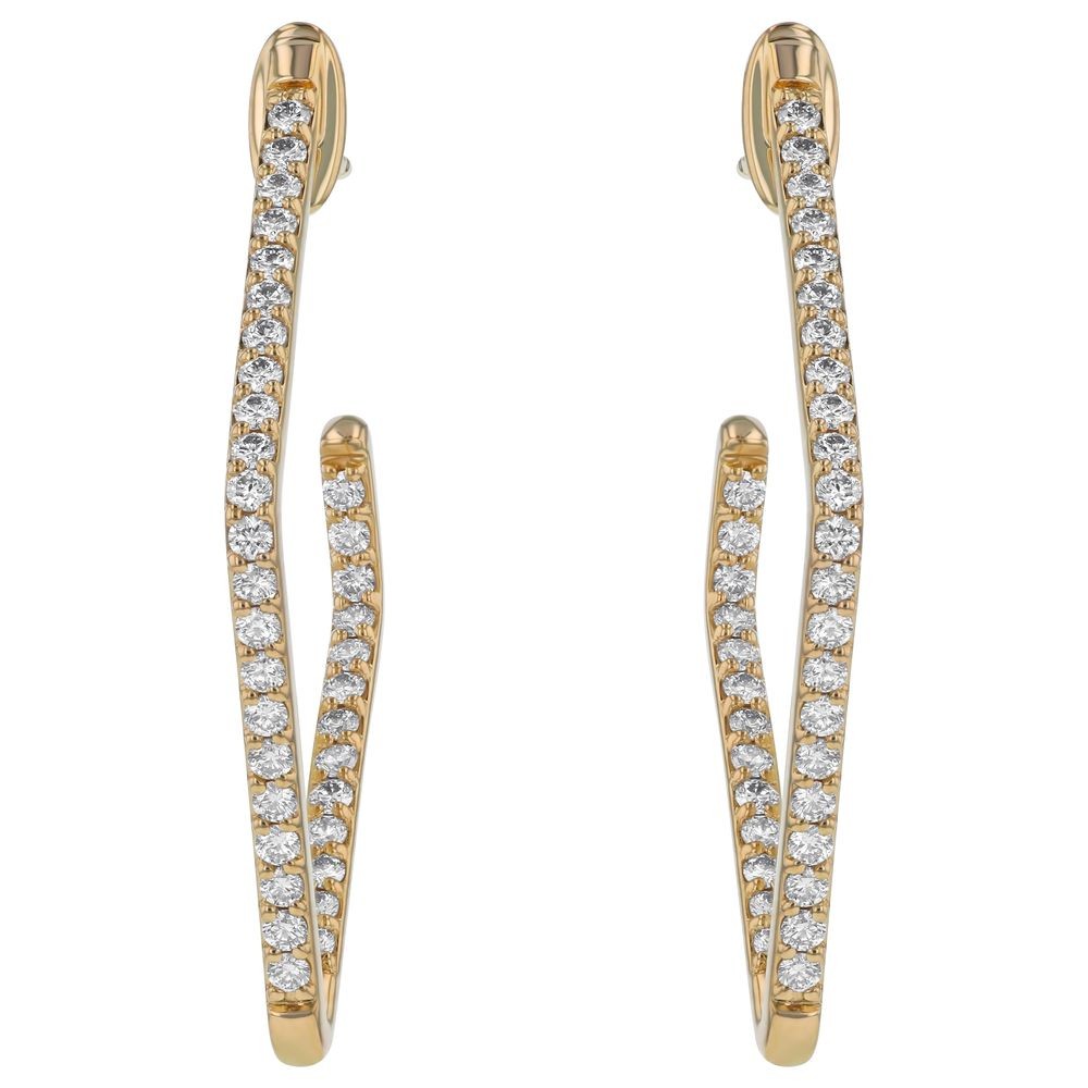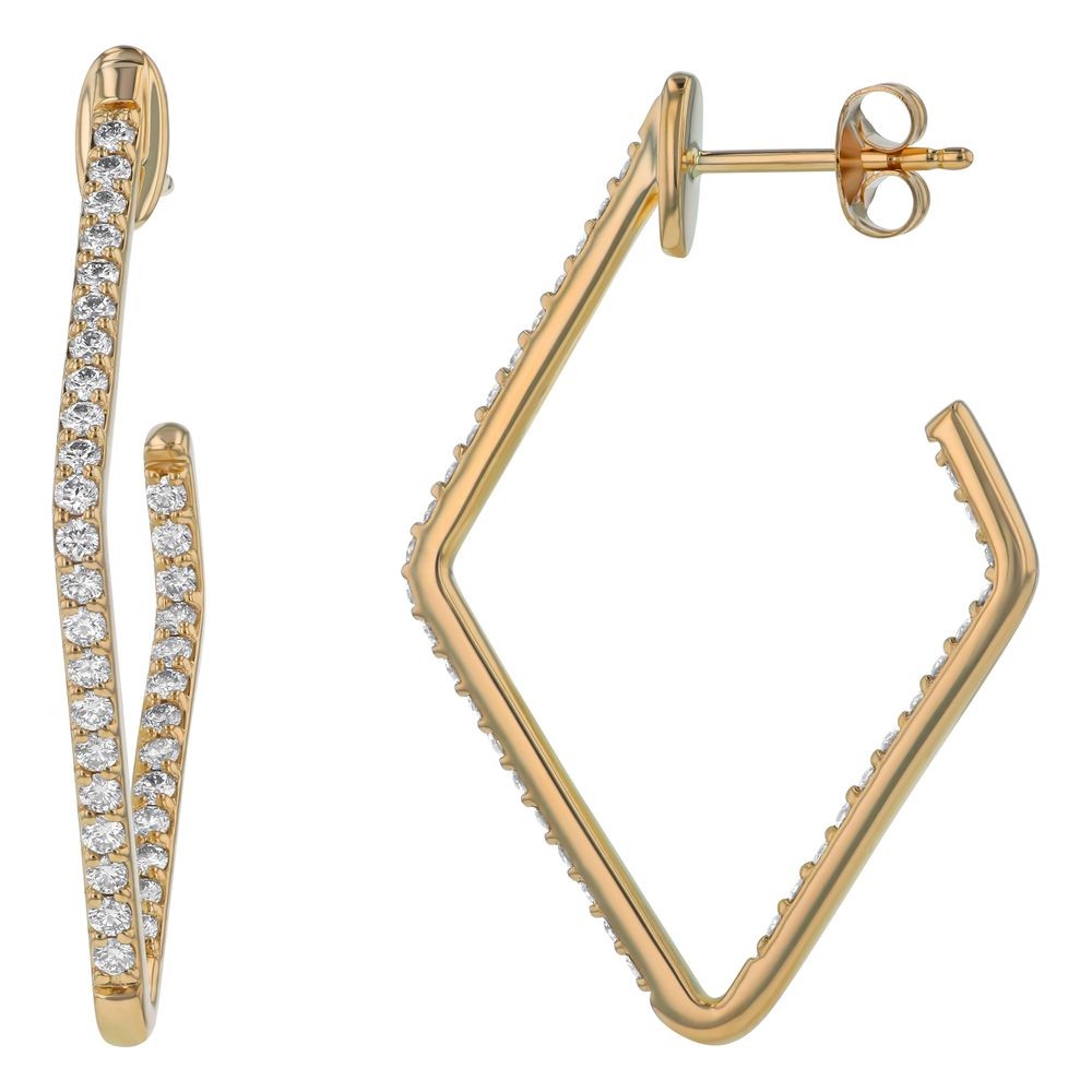 14K yellow gold rhombus shape earrings set with 1.00 ct. round diamonds in inside-out pattern