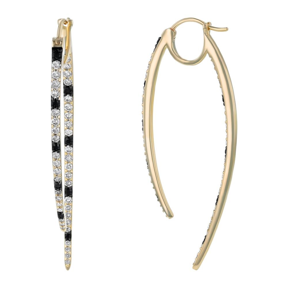 14K yellow gold inside-out hoop earrings set with 1.50 ct. round black and white diamonds.