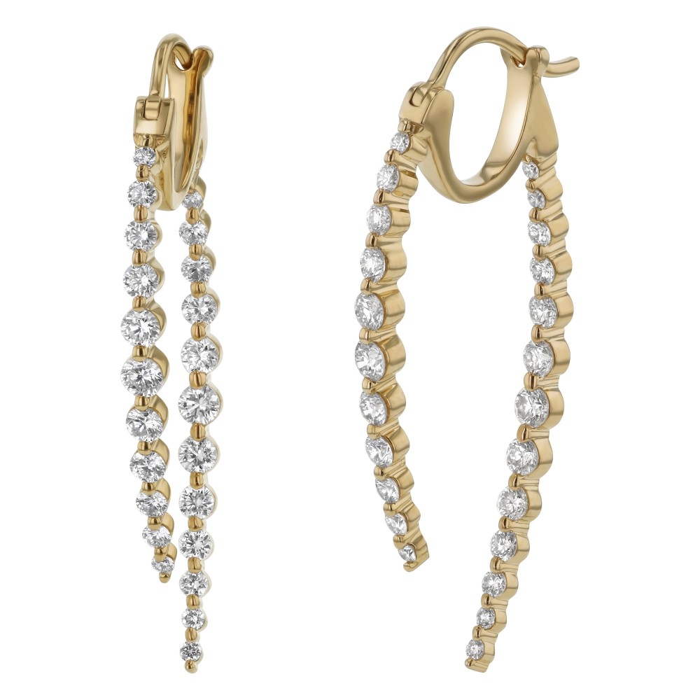 14K yellow gold inside-out hoop earrings set with 1.75 ct. round white diamonds.