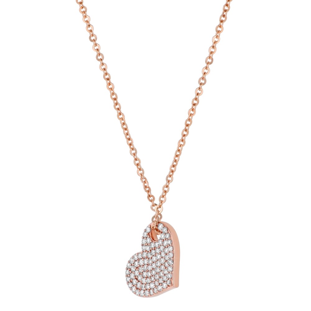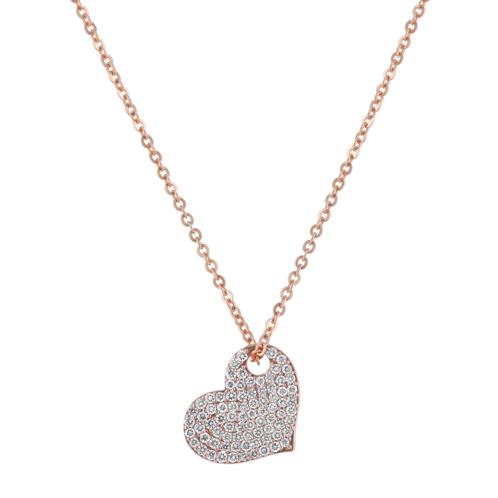 14K rose gold heart pendant pave set with 0.35 ct. round brilliant diamonds. Chain sold separately.
