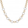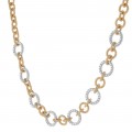 14K two tone yellow and white gold necklace set with 2.70 ct. diamonds in fancy braided links and diamond circles design. The necklace is 18 inches adjustable length with lobster clasp.