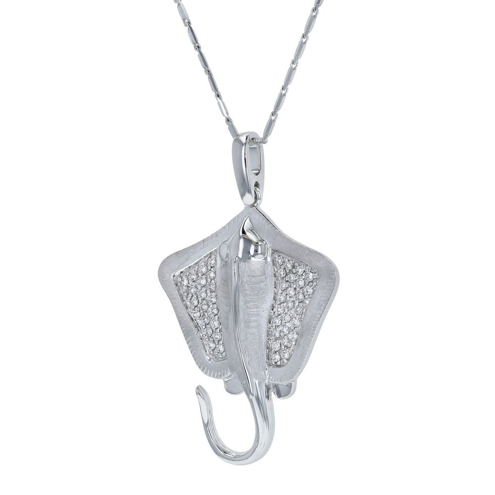14K white gold stingray pendant set with 0.21 carat round brilliant diamonds and detailed with polished finish. Chain sold separately.