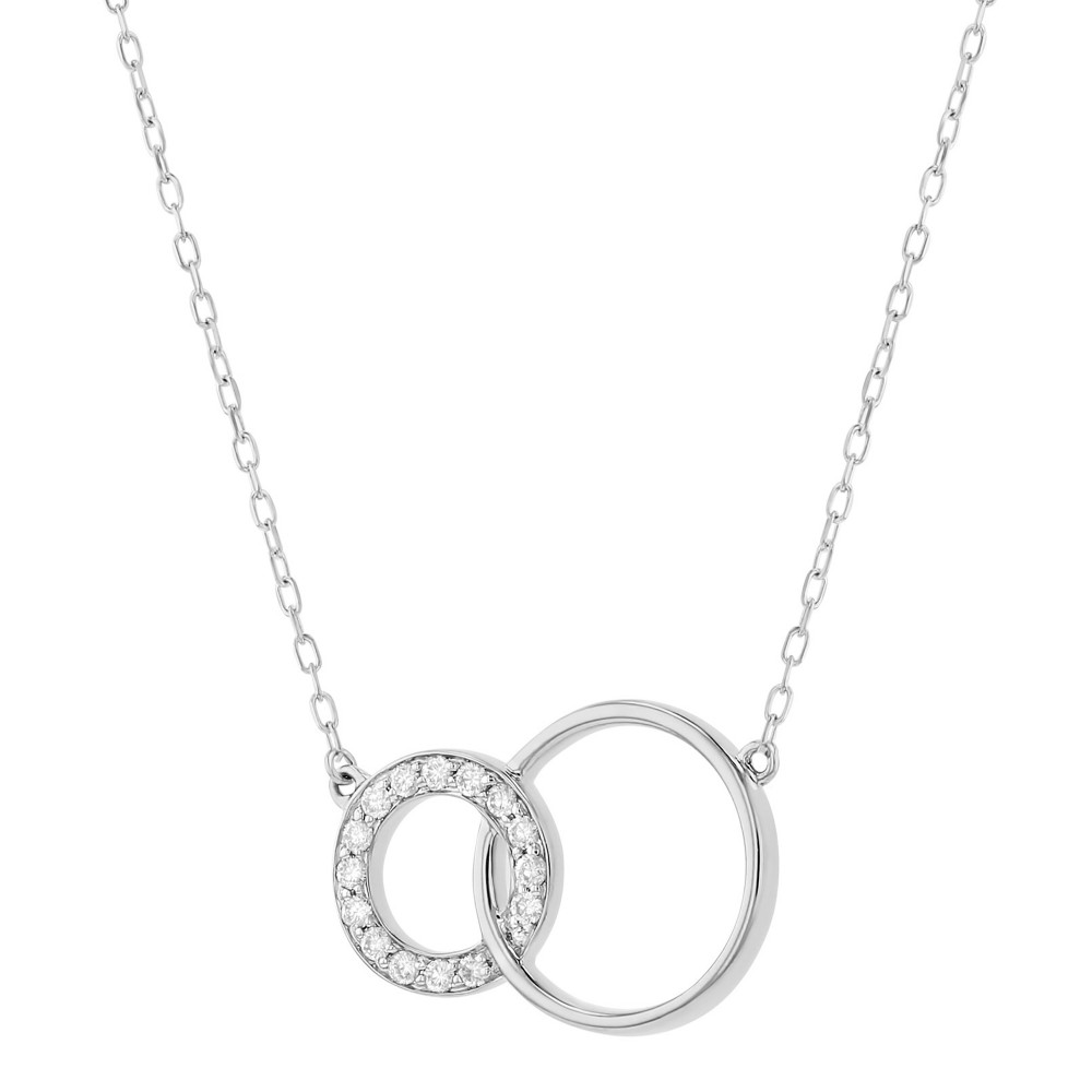14K white gold entwined circles necklace set with 0.25 carat round brilliant diamonds on cable chain. Chain included.
