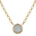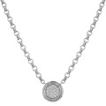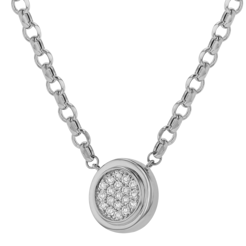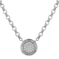 14K white gold round bezel necklace set with 0.50 carat round brilliant diamonds on Rollo chain. Chain included.