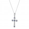 14K white gold cross pendant set with 0.35 carat round brilliant white diamonds and 0.30 carat natural blue sapphires. Sapphires are natural, heat treated. Chain sold separately.