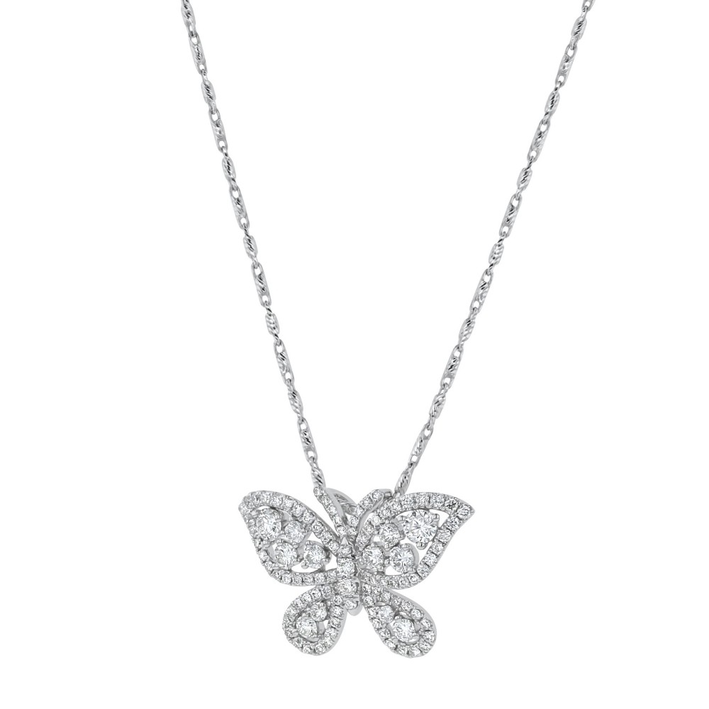 14K white gold butterfly necklace set with 0.70 carat round brilliant diamonds and polish finish. Chain sold separately.