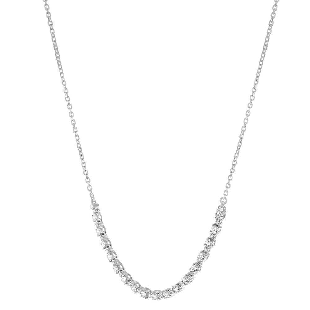 14K white gold prongs set flexible curved bar centerpiece necklace set with 1.35 carat round brilliant diamonds. Price includes the chain.